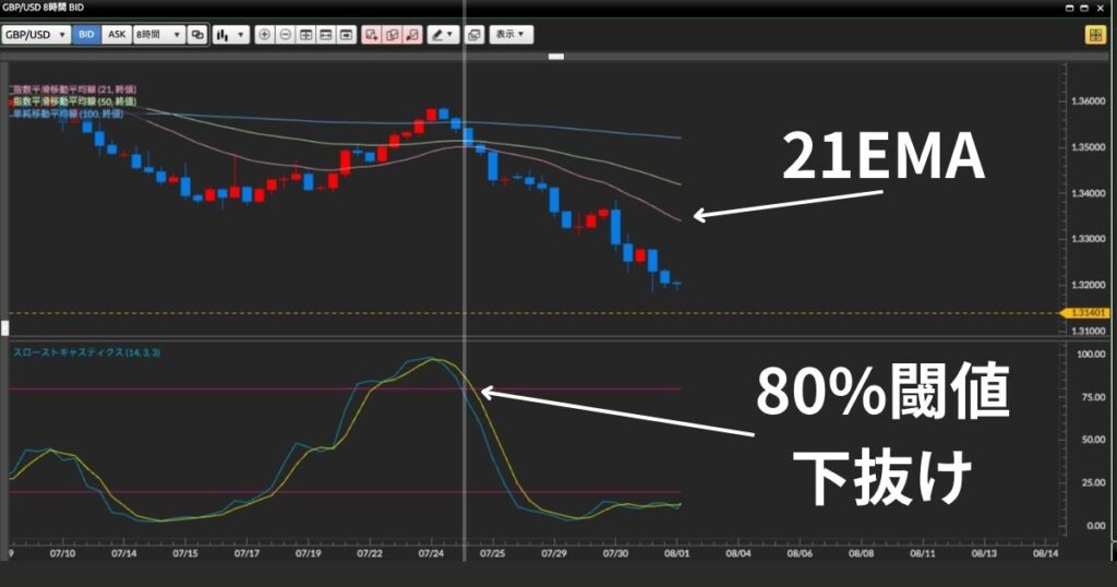 - ストキャスティクスが80%以上から下抜け